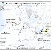 La propriété Wabamisk Est, nouvellement constituée, correspond à la partie est de la propriété Wabamisk détenue à 100% par Azimut et est un projet situé à 42 km au nord-est de la propriété Whabouchi (Nemaska Lithium Inc.). D’importantes lignes de transmission électrique passent directement sur la propriété ou à proximité de sa limite est, et la route du Nord passe 37 km plus au sud. La ville la plus près est Nemaska, une communauté crie, 55 km au sud-est.