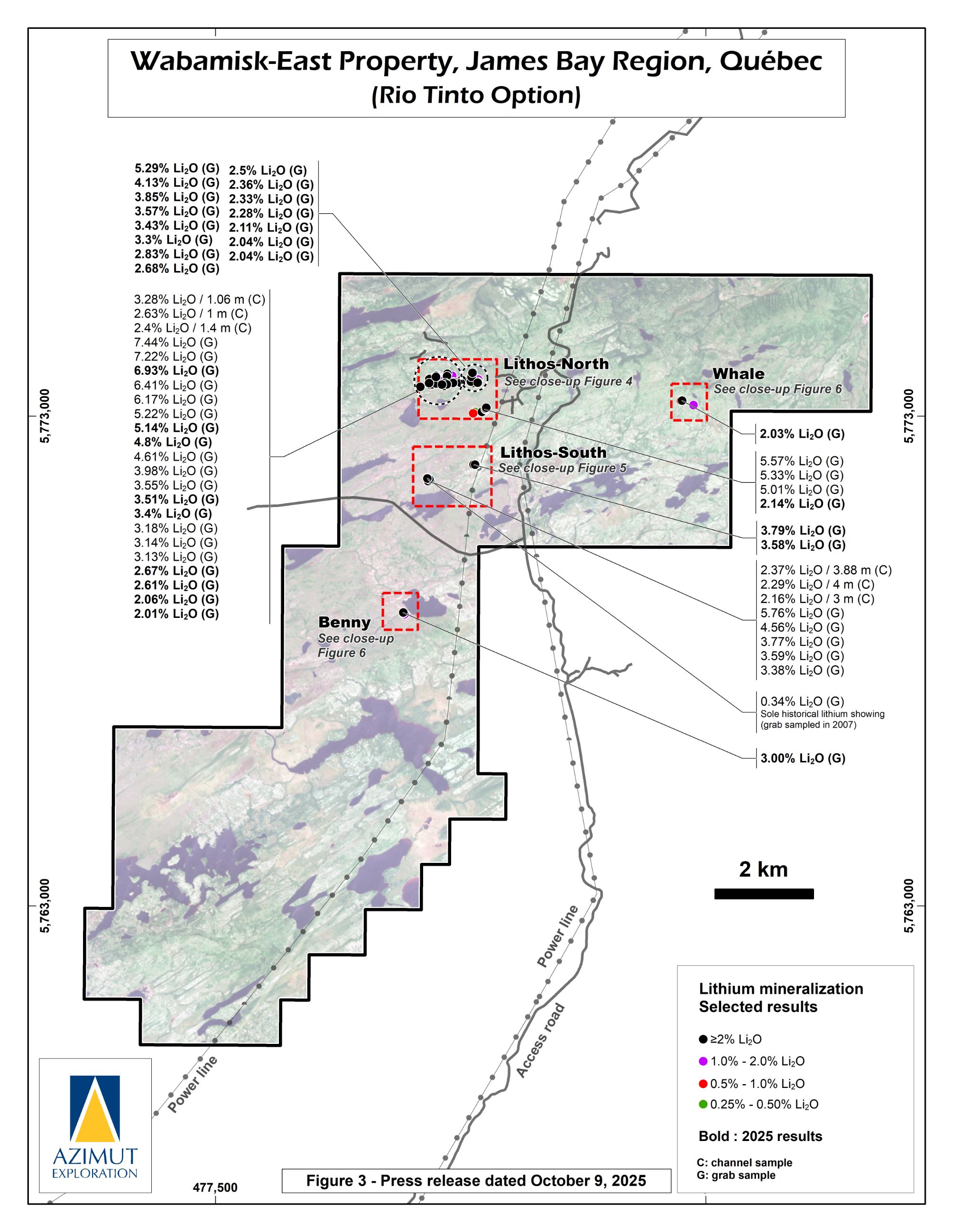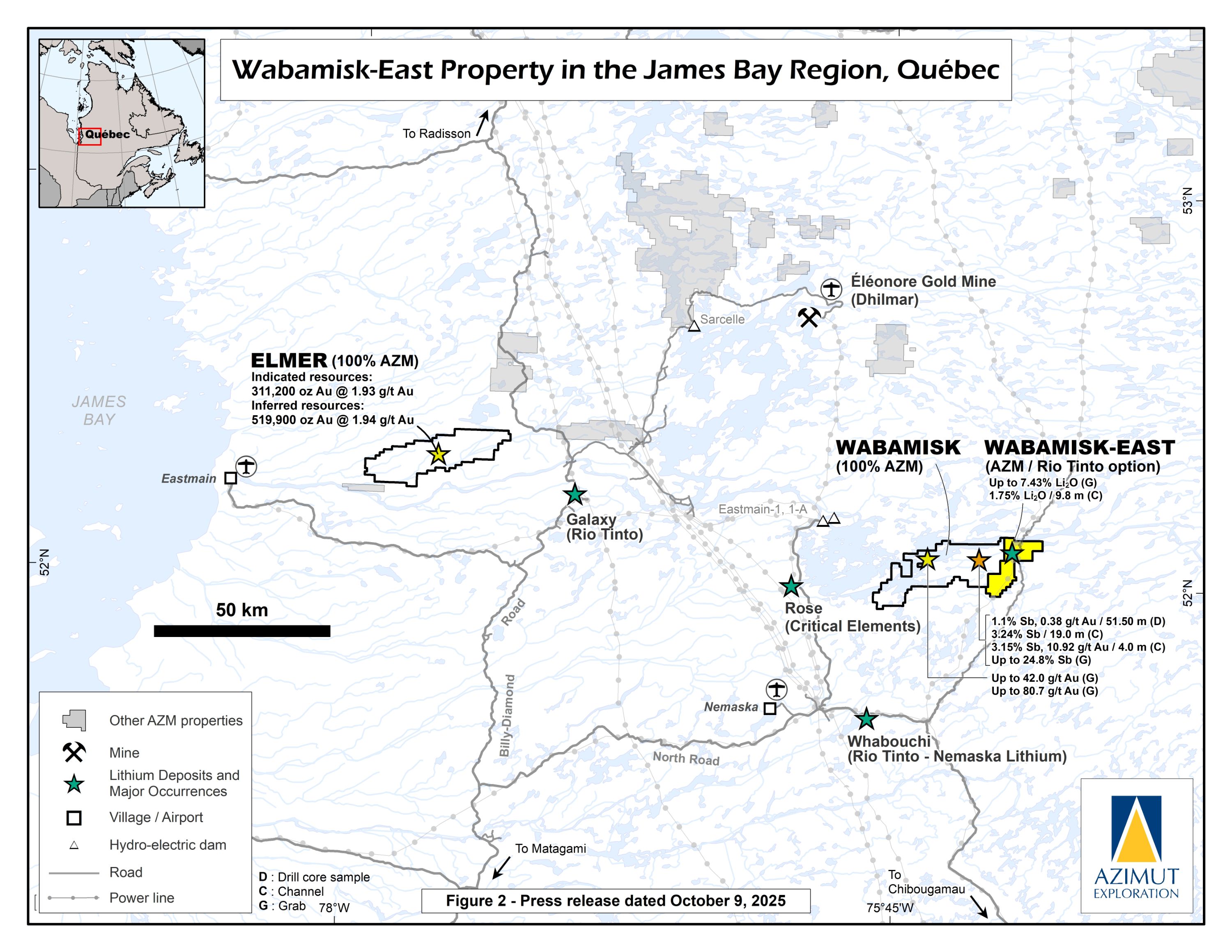 En juillet 2025, Azimut a annoncé une entente d’option révisée avec Rio Tinto Exploration Canada Inc. ("Rio Tinto") qui étend et consolide les ententes anterieux et couvre maintenant trois propriétés – Corvet, Kaanaayaa et Wabamisk Est (collectivement les « Propriétés CKW ») (communiqué du 24 juillet 2025).