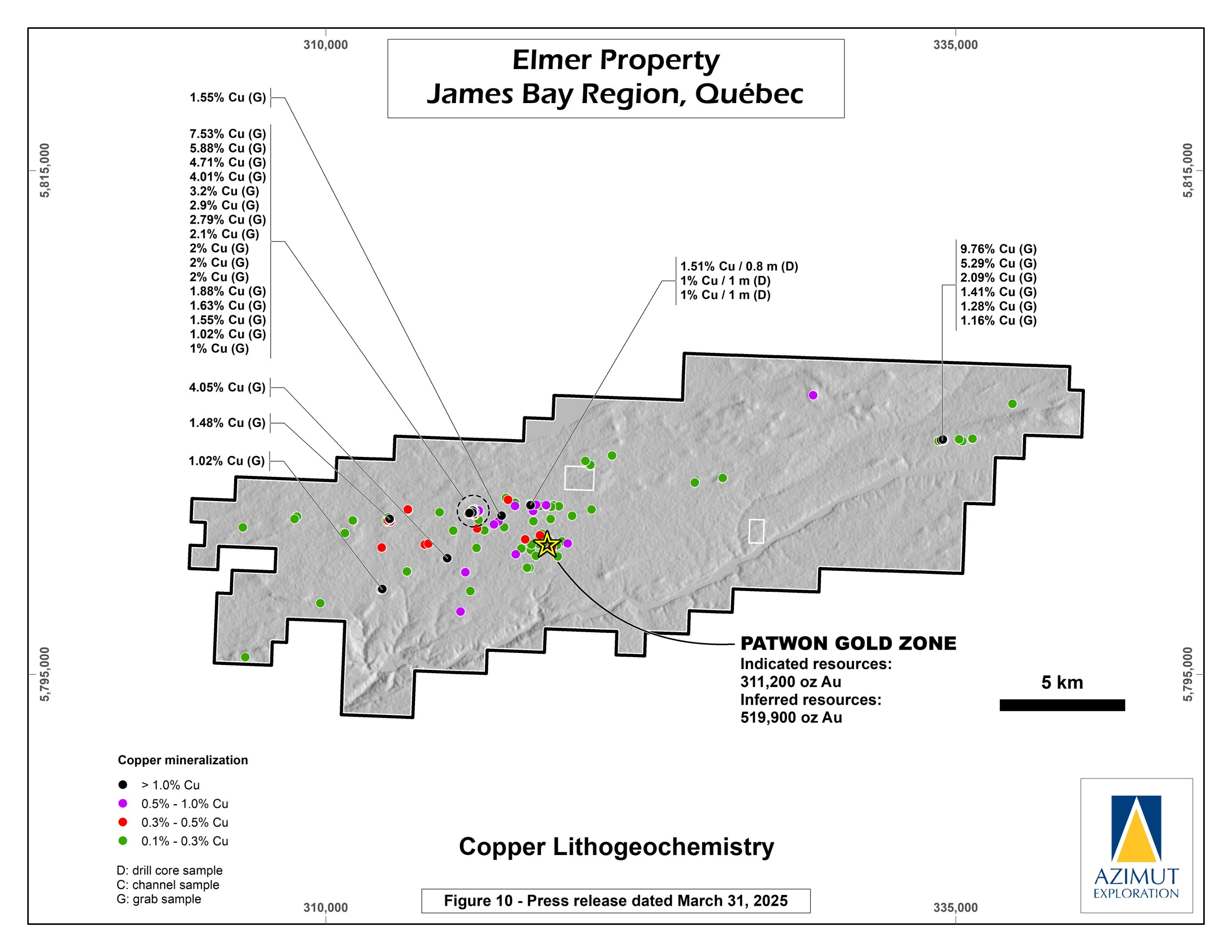 Azimut Resumes Drilling at Elmer and Discovers a Copper-Gold Showing by Prospecting