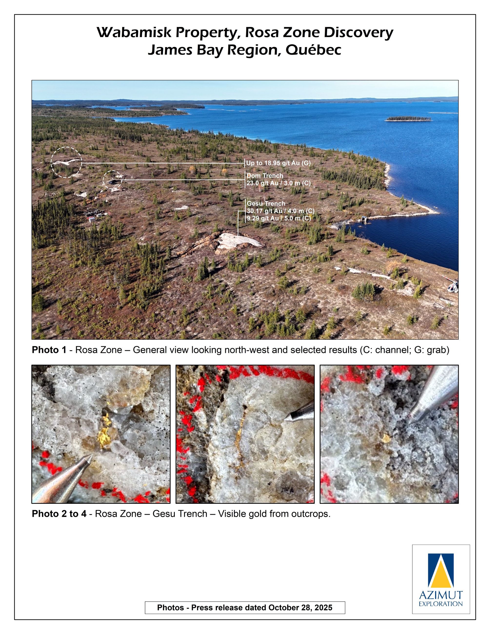 Azimut Obtains High-Grade Gold Results from Channel Sampling on the Rosa Zone, Wabamisk Project, James Bay, Quebec
