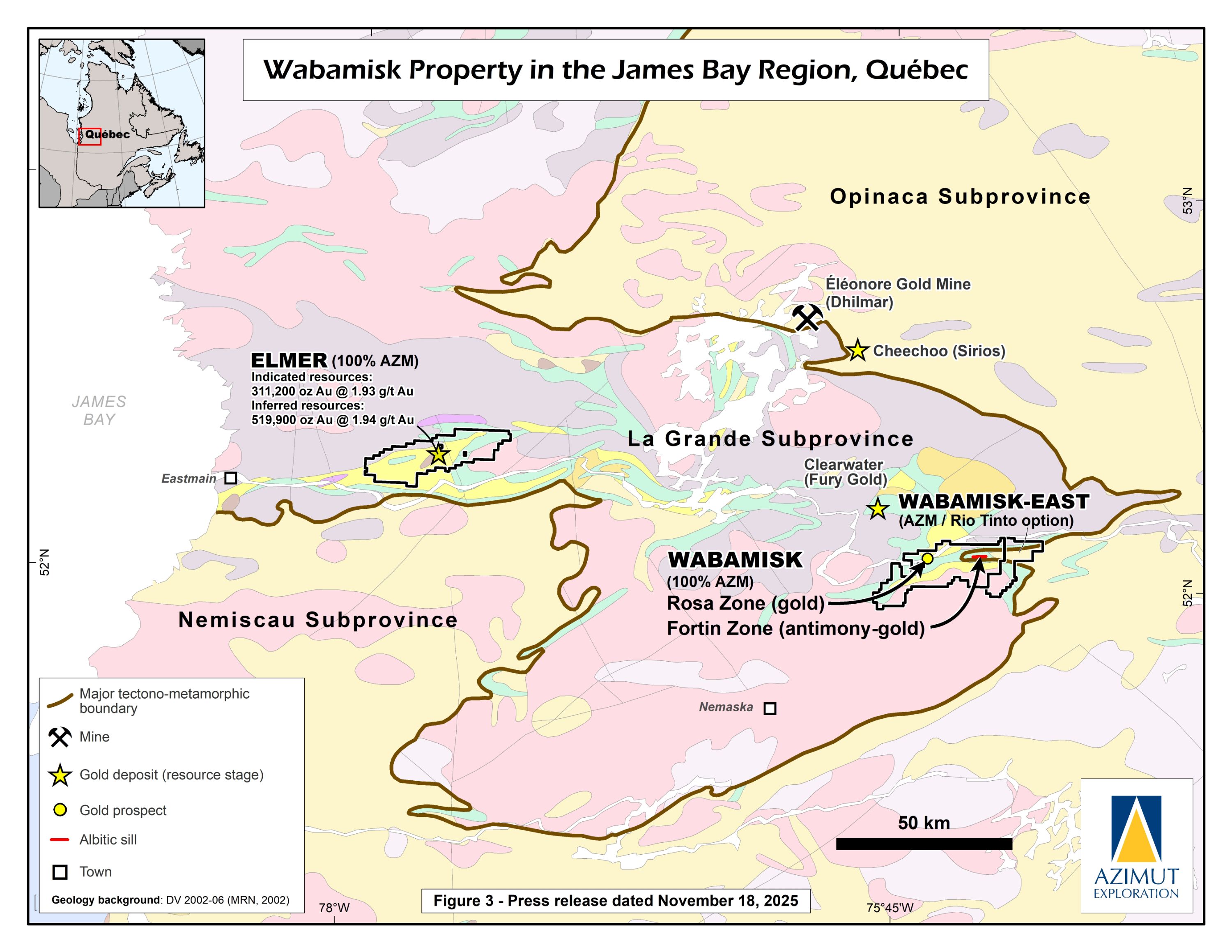 Azimut and Placer Dome add claims to the Wabamisk Property