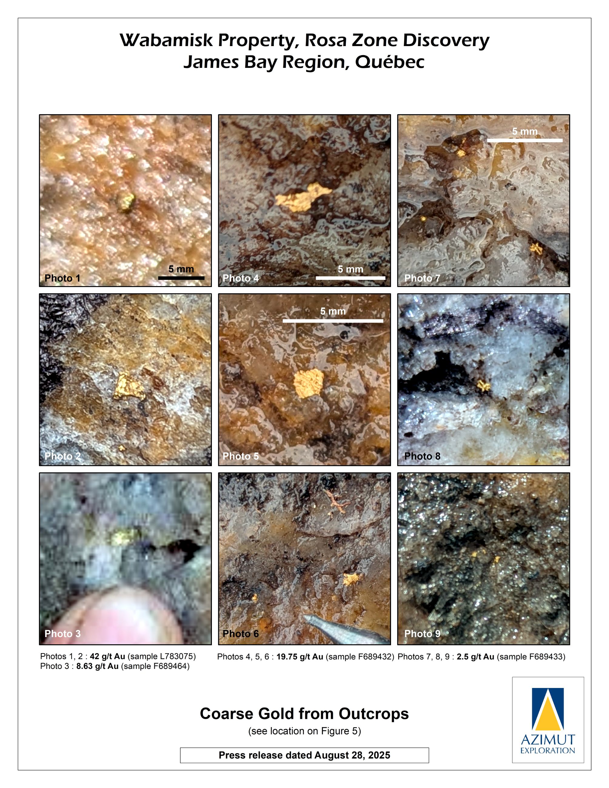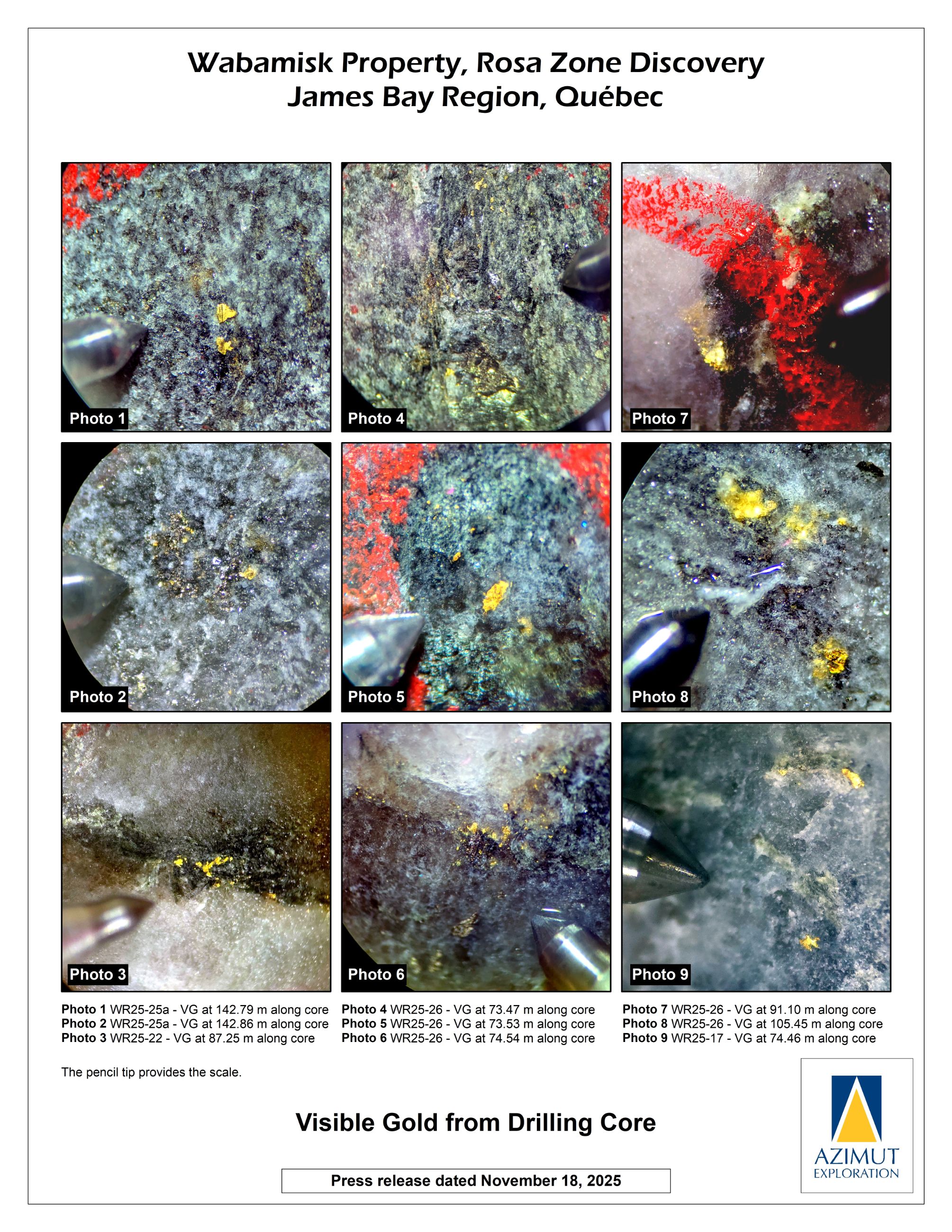 Azimut Identifies Visible Gold in 11 Drill Holes on the Rosa Zone, Wabamisk Project, James Bay, Québec