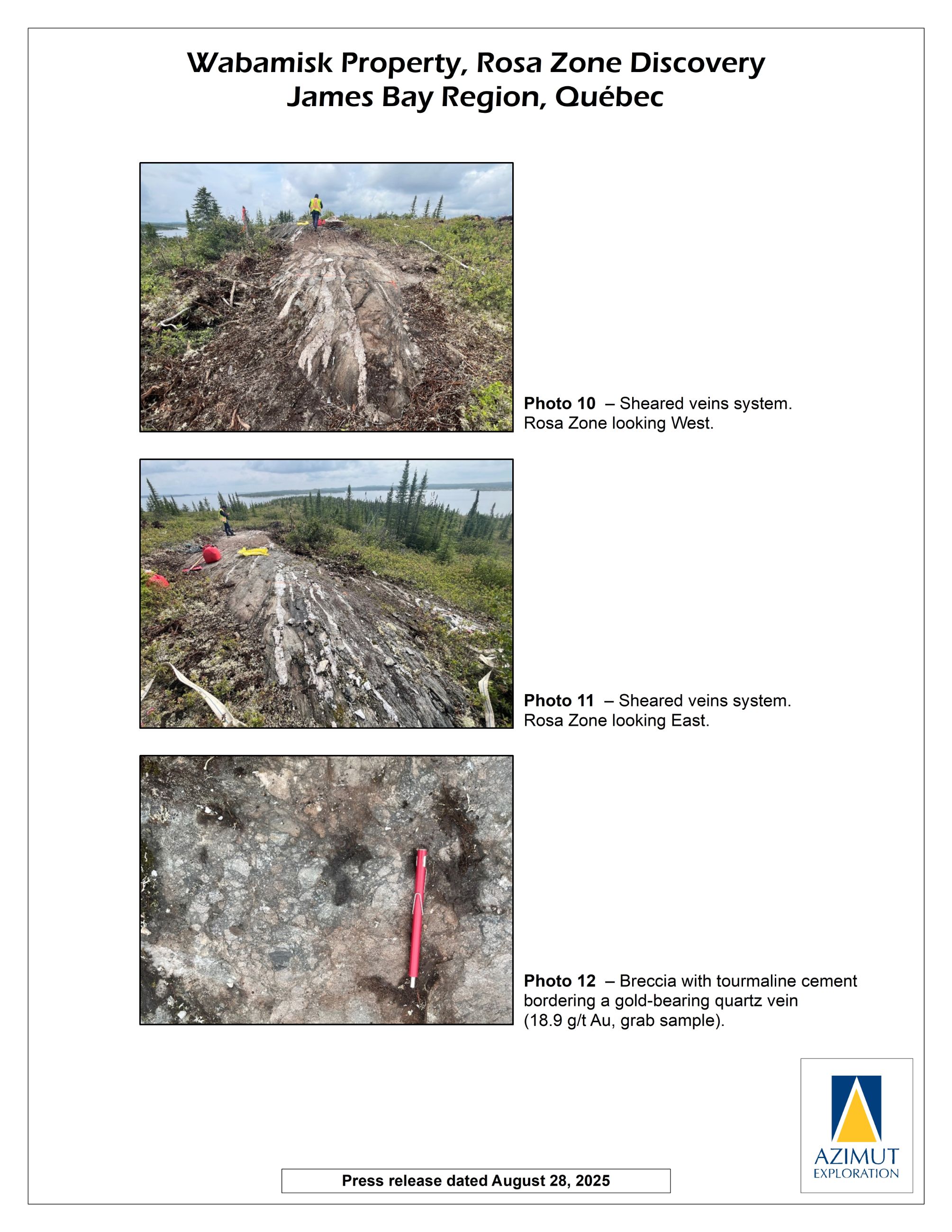 Azimut Obtains High-Grade Gold Results from Channel Sampling on the Rosa Zone, Wabamisk Project, James Bay, Quebec